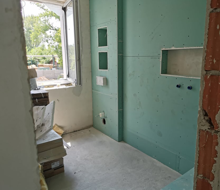 Rejtett wc kartonozása, fürdő polc készítése Veresegyházon